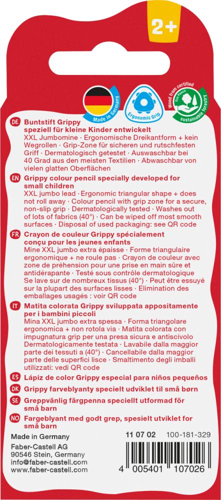 Potešte najmenšie deti skvelými pastelkami s mäkkou tuhou, ktoré maľujú nielen na papier, ale aj hladké povrchy ako sklo, zrkadlo. Vysoko pigmentovaná XXL krieda poskytuje intenzívne a výrazné farby, pričom tvar pastelky a gripový úchop je prispôsobený pre malé detské ruky. Tuha je riediteľná vodou, poskytuje príležitosť naplno prejaviť vašu kreativitu. Pastelky majú ergonomický, trojuholníkový úchop. Sú dermatologicky testované, farby sú vyprateľné z väčšiny textílií. Drevo pochádza z trvalo udržateľného lesného fondu. Pastelky Grippy - náš hrdina pre veľmi malé deti. 4 pastelové farby.
